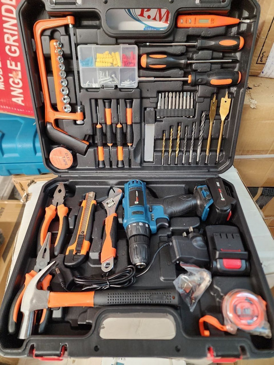 ✔ دارای کلیه ابزارهای مصرفی شامل؛ آچار فرانسه سایز۸، انبردست، دمباریک، چکش، بکس تک سایز ۴ تا ۱۳، متر ۳ متری، پیچ گوشتی دوسو و چهارسو سایز بزرگ، پیچ گوشتی نوک خور، مته آهن سایز ۵ و ۶ و ۸، مته دیوار سایز ۵ ،۶ و ۸، مته برگی سایز ۱۲ و ۱۶، ۹ عدد نوک پیچ گوشتی، تبدیل نوک پیچ گوشتی به بکس چسب برق، کاتر، فازمتر دیجیتال، آچار سه نظام، ۵ عدد تیغ کاتر، دو سایز پیچ گوشتی موبایلی دو سو و دو سایز پیچ گوشتی موبایلی چهارسو، کمان اره چوب و فلز، مجموعه سایزبندی پیچ و رولپلاک
