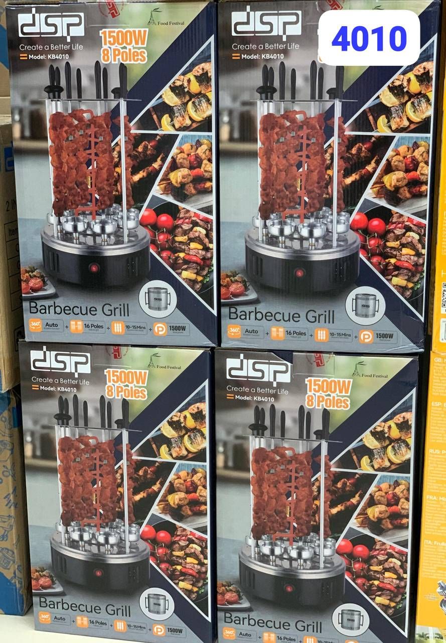 🍗دستگاه کباب زن برقی dsp مدل ۴۰۱۰ یکسال گارانتی شرکتی توان 1500 وات 8 سیخ چرخش 360 درجه آماده سازی در 10-15 دقیقه کیفیت پخت عالی